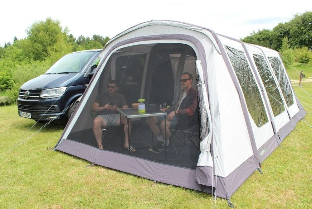 There is a large zip back door that allows for full or half opening complete with large windows with zip-up curtains, behind this is a full mesh panel that can be left in to offer maximum airflow through the awning while keeping insects out.