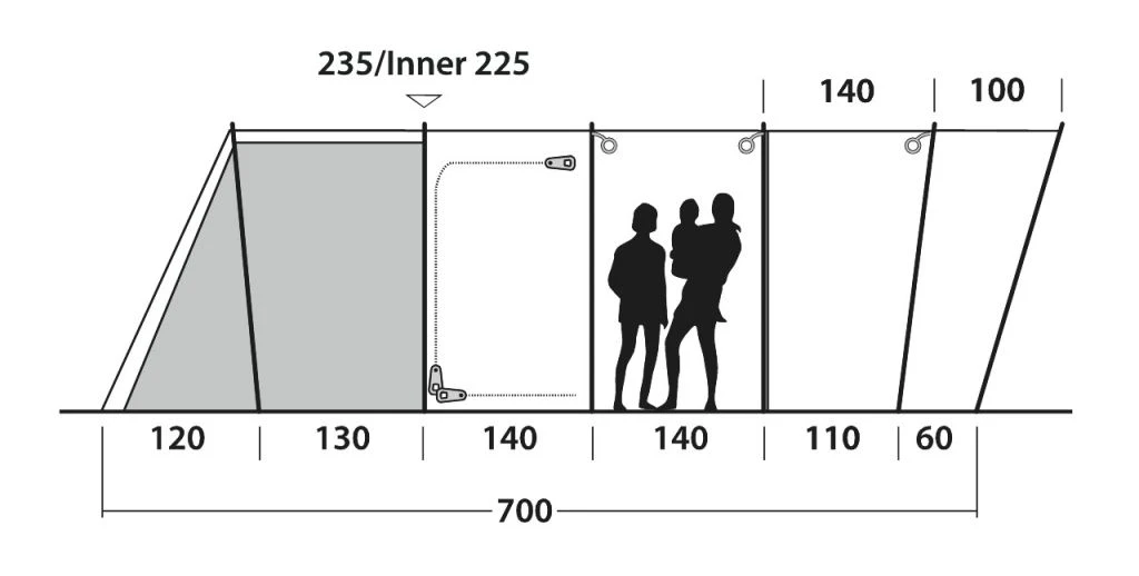 Home from home comfort and convenience are assured with Quick & Quiet Access to zone 2, the Outwell HookTrack System, Easy Pegging System, Cable Entry, zip-up curtains, Rear Ventilation System and low-side vents.
