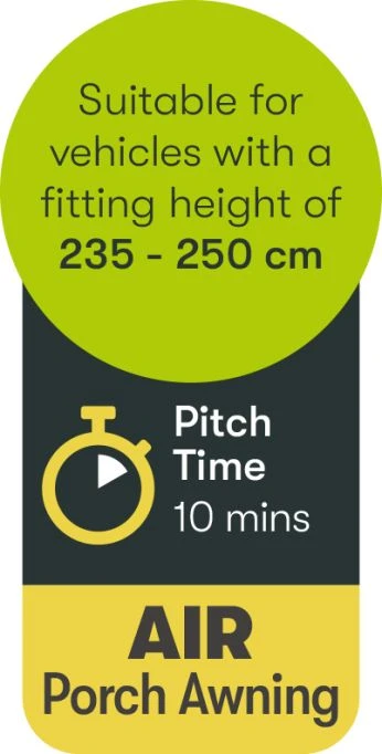 The awning is all about ease of use and value. It features an easy to use, minimal quick-fit pole system. The pitching is easy enough to be done by a single person if required. It uses the modern Quest Tec 150 fabric which is lightweight, quick drying and extremely waterproof making the awning easier to use and maintain. It is U.V. coated to help protect it from the harmful UV rays which helps extend its lifespan and gives you a U.P.F. rating of 50+ which is the highest possible giving you complete protection.