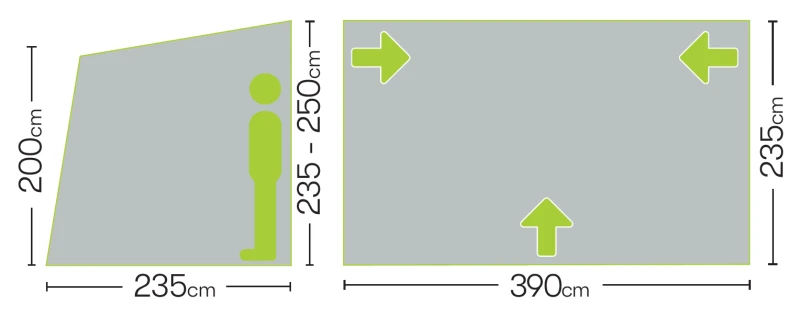 The awning is all about ease of use and value. It features an easy to use, minimal quick-fit pole system. The pitching is easy enough to be done by a single person if required. It uses the modern Quest Tec 150 fabric which is lightweight, quick drying and extremely waterproof making the awning easier to use and maintain. It is U.V. coated to help protect it from the harmful UV rays which helps extend its lifespan and gives you a U.P.F. rating of 50+ which is the highest possible giving you complete protection.