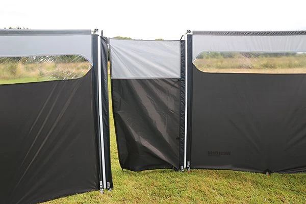 This is the door panel for use with the excellent Windshield pro. This door panel is connected to your existing windshield pro giving you a door in your windbreak.